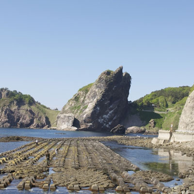 Hotokegaura has been formed by submarine volcanic activities around 20 million years ago and some million years of erosion by the sea. A band of cliffs and giant stones of mystic shapes lie along the bold shoreline. Many of the giant stones are named after some Buddhism episodes and others have colorful legends.